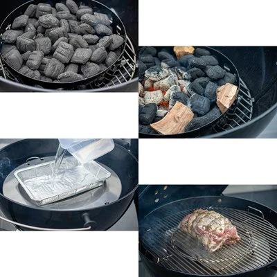 =”width=device-width,>The diffuser plate sits on top of the charcoal ring. This diffuser plate helps to again reduce the airflow to the fuel, meaning the fuel will burn slower and longer. The diffuser plate also creates a barrier between the fuel and the food, so the centre of the cooking grill becomes the protected, indirect cooking zone.Â
