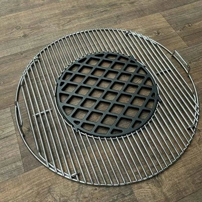 If your a big fan of steaks, chops and char lines, then this replacement grate is for you. This gate gives you the permanent option of using the Weber GBS Sear Grate RRP: £60.99 as well as the cooking grate on the outside for just £9 more! Pair this Stainless Steel Cooking grate with the Cast Iron GBS inset to get beautiful sear lines on your food.Â