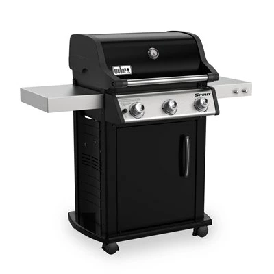 This three burner gas BBQ is the most compact member of the Spirit series. Perfect for anyone short on space but keen on having a premium BBQ. It has a folding side table for saving space, and a great set of features. Incorporating a black enamel and stainless steel finish coupled with a stylish door covering the front of the cart. The E-315 has three stainless steel burners protected by stainless steel flavorizer bars in close proximity to the high grade cast iron cooking grates. This makes it absolutely ideal for direct grilling; lots of high heat enables you to cook a wide variety of meats and foods. Ranging from sausages, burgers, steaks, to vegetables and fresh fish.